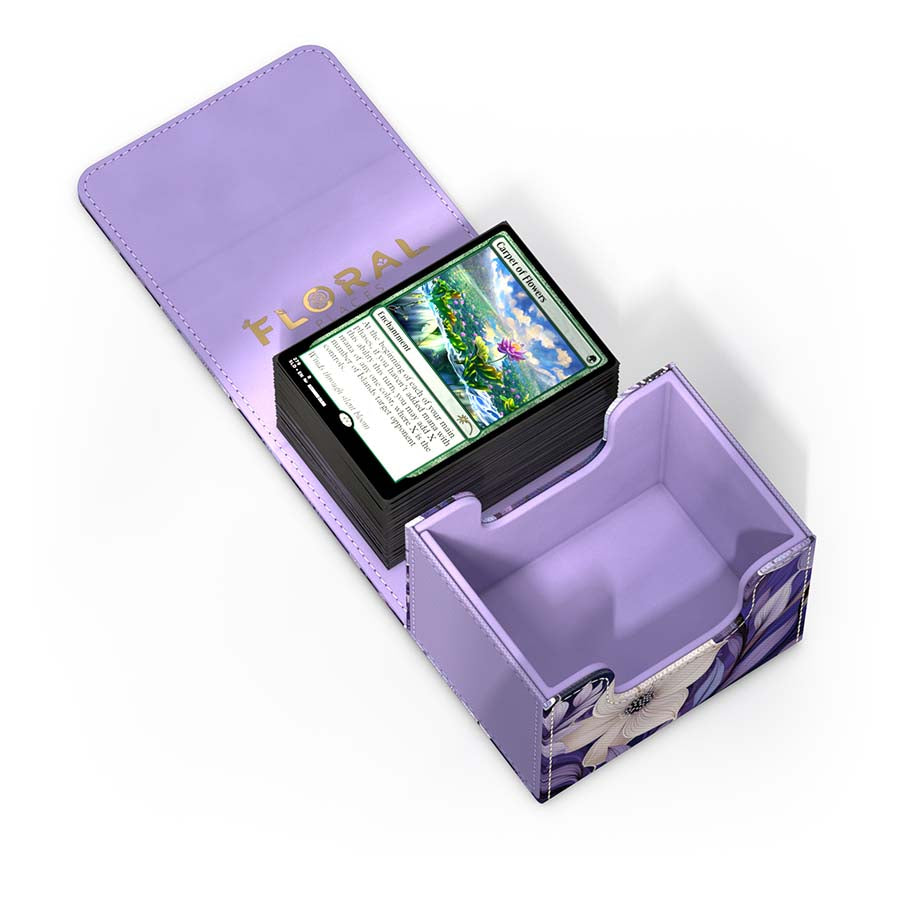 Ultimate Guard’s popular “Floral Places” Sidewinder series is back with six brand new designs – and for the first time also with deck boxes in the 133+ size, perfect for Magic: The Gathering’s Commander format! Our Sidewinder deck boxes feature a resistant Xenoskin outer casing, quality microfiber inner lining, and a strong magnetic closure. Depending on the variant, they are designed to hold 100 or 133 double-sleeved cards in Ultimate Guard Sleeves of trading card games like Magic: The Gathering, Pokémon, Lorcana, One Piece or Yu-Gi-Oh! can be stored safely.