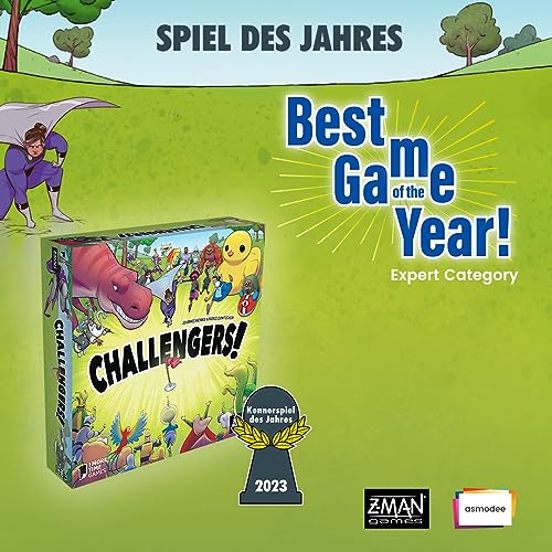 Challengers is an interactive Deck Management game with an original tournament gameplay style for 1-8 players. Play individually or with a group of friends! Each round, each player improves their deck with new characters and battle against new opponents. 75 distinct characters with more than 40 exciting effects create a unique experience every game!
