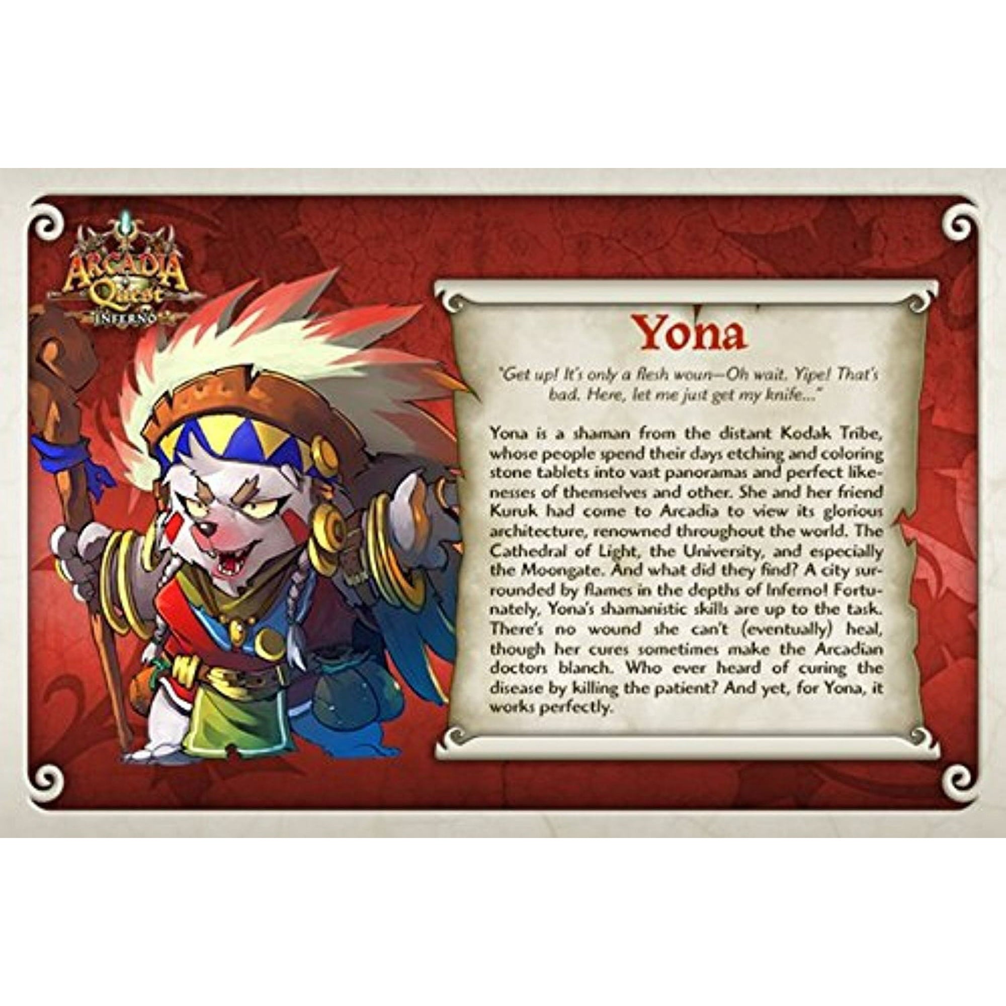 Yona is an ancient mystic skilled in the art of raising heroes from the dead. Trained by the distant Kodak tribe, she has traveled to Arcadia with her friend, Kuruk, to see their famous architecture, but instead they came to find a city besieged. Kuruk is a bowman of legendary skill. He seems to hit even when he misses. Opponents may consider it cheating, but for Kuruk, it’s just the magic dance of the arrows. This Hero Pack includes two worthy volunteers from the Kodak tribe to join the battle against Inferno. REQUIRES THE ARCADIA QUEST OR ARCADIA QUEST: INFERNO CORE GAME TO PLAY.