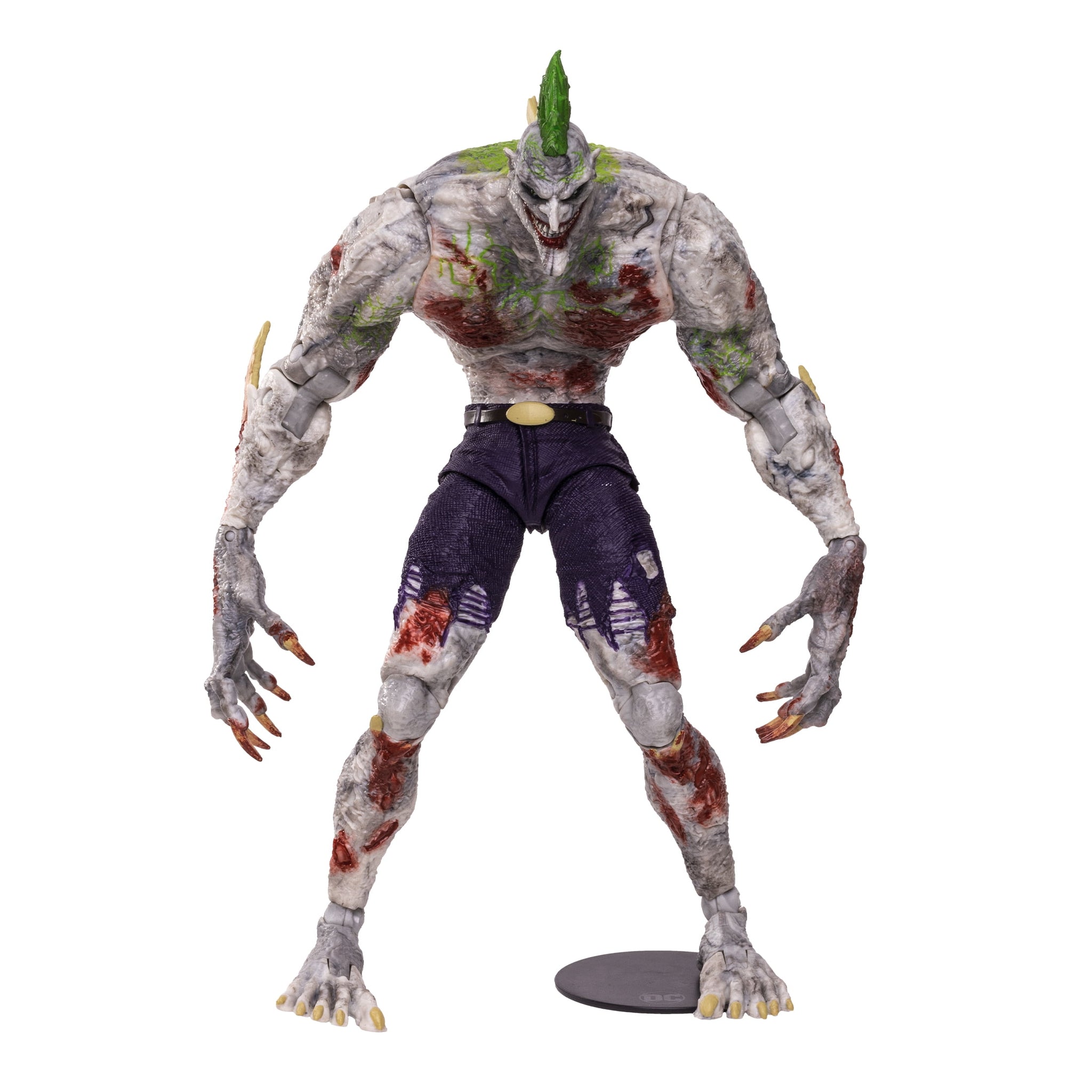 An insanely dangerous Super-Villain, The Joker's white skin, green hair, and blood-red lips belie the chaotic nature underlying his cartoonish appearance. The self-styled Clown Prince of Crime has no superpowers, beyond a capacity for incredible violence and a skill at creating deadly mayhem. He frequently concocts elaborate schemes to entrap his arch nemesis, Batman. One of The Joker's most evil schemes involves his use of the Titan Formula, a potent toxin he secretly funded to be a successor to Bane's Venom. Once injected with it, the host mutates into a large monstrosity and gains vast strength and durability, which allows The Joker to unleash a horrifying army upon an unsuspecting Gotham City! Always thirsty for power, The Joker even injects himself with the formula and transforms into The Joker Titan... but it all proves futile when Batman thwarts The Clown Prince of Crime's plans and stops the chaos from spreading any farther.