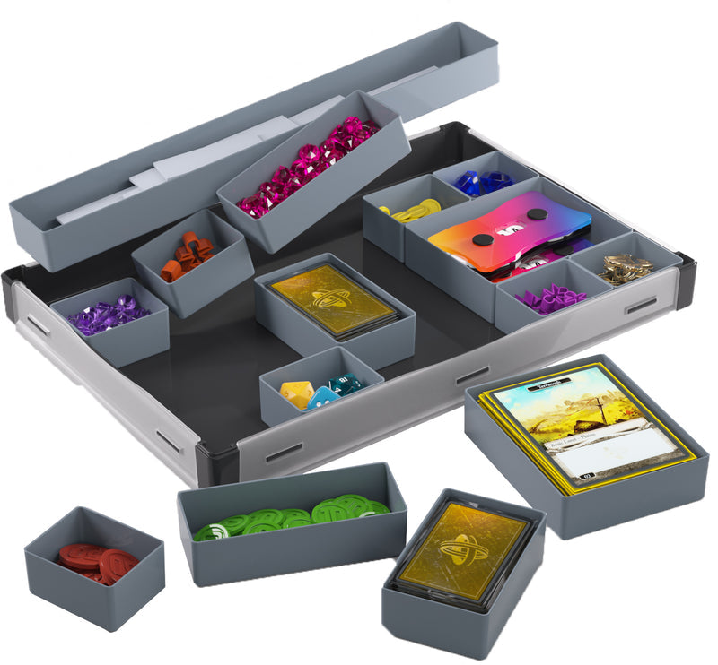 Personalize the extra-large TOKEN SILO XL to fit your storage needs! The removable trays allow multiple color and size combinations. The Gamegenic Token Silo and Token Silo Cards Add-on are also compatible Contents: Each Token Silo XL contains 15 removable trays