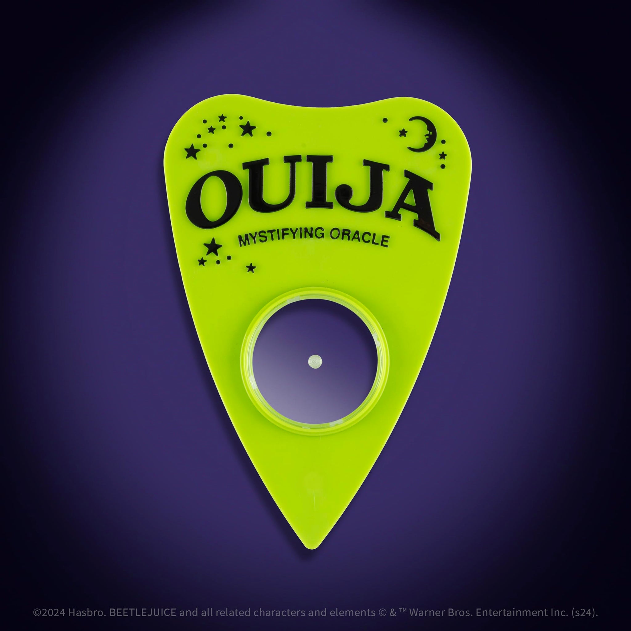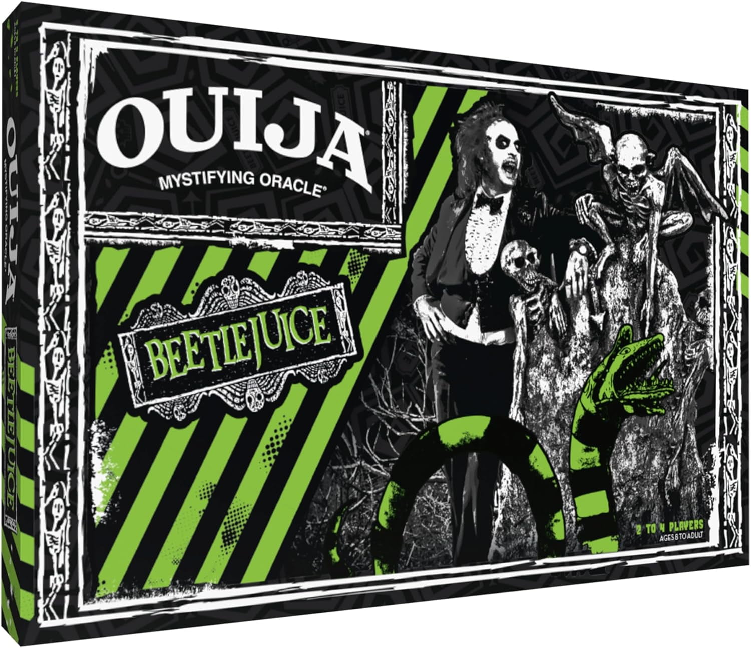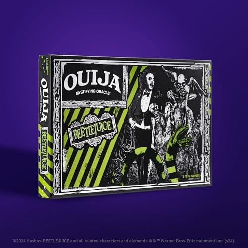 Unleash the Netherworld's secrets with Ouija: Beetlejuice. Summon the spirits by saying "Beetlejuice" three times and get answers to all of your burning questions! With a gothic Beetlejuice-themed design, this vintage-inspired Ouija board offers a thrilling experience, illuminating the unknown with haunting symbols and mysterious spirits.