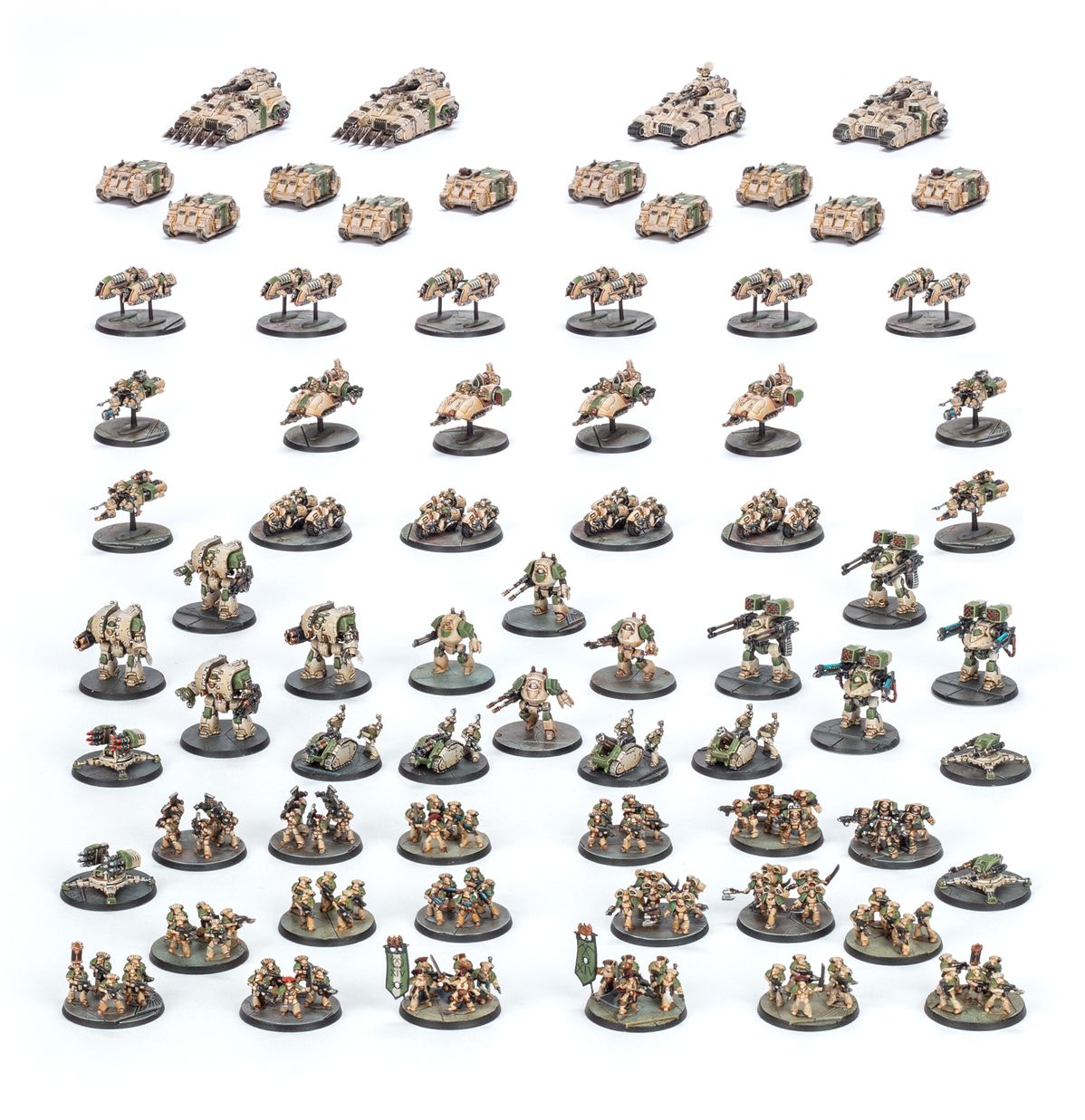 This boxed set contains 160x epic scale plastic Citadel miniatures, which combine to build 70x Solar Auxilia models as follows: