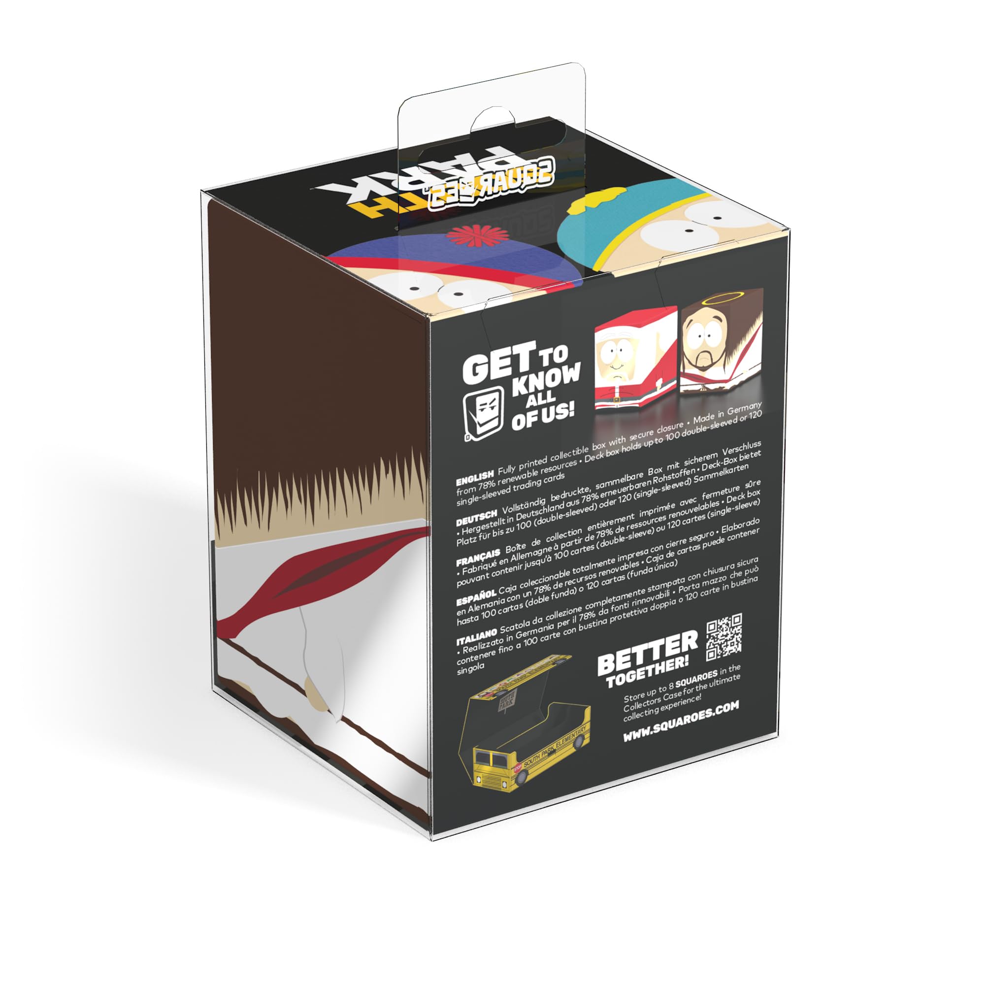 Collectible box for storing TCG decks, tabletop gaming accessories, and/or collectibles. This Squaroe holds up to 100 cards in double protective sleeves if used as a deck box. Squaroes are made from 78% renewable recources and fit perfectly into the separately available Collectors Case.